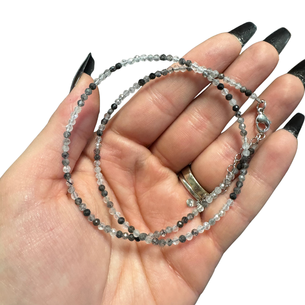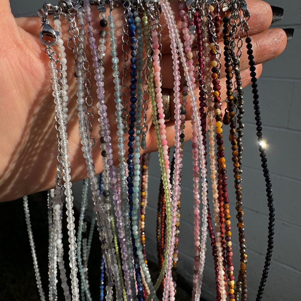 This listing is for one (1) 2mm super dainty gemstone faceted necklace.