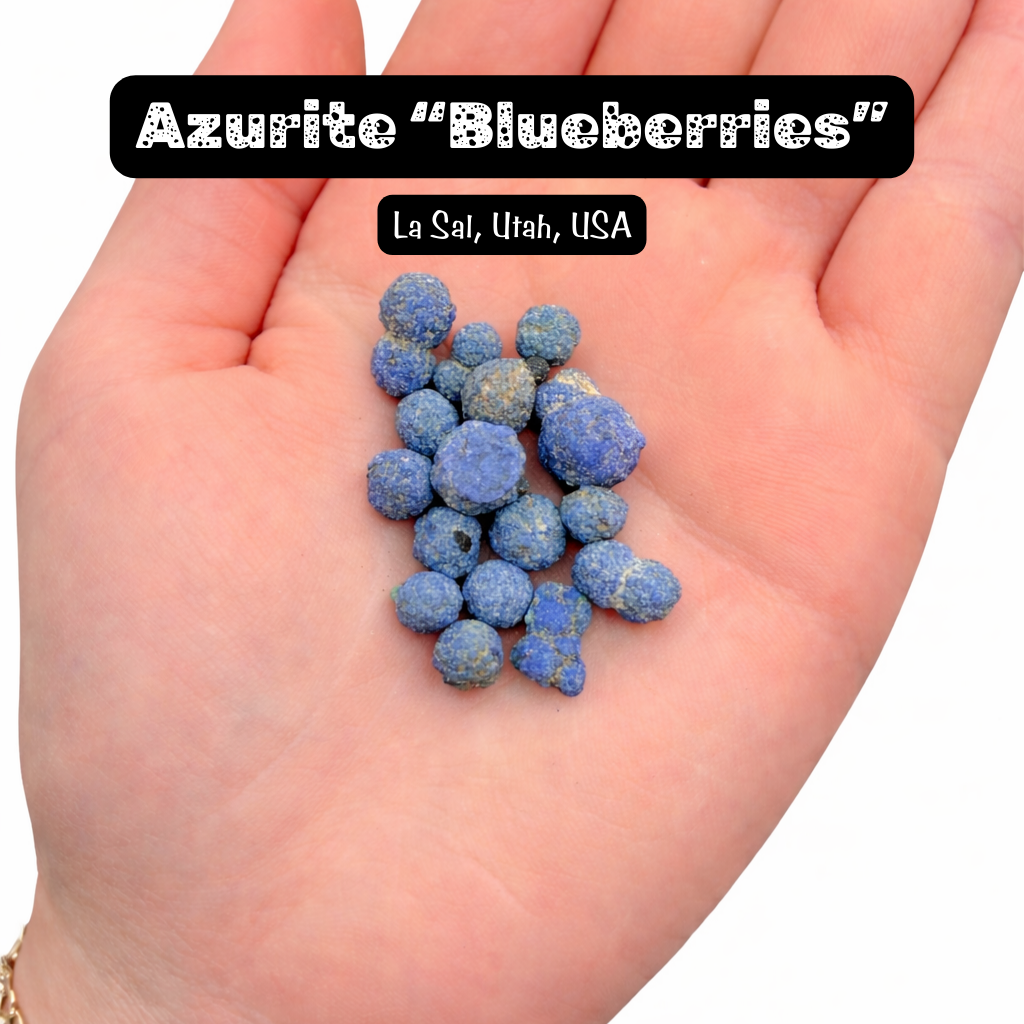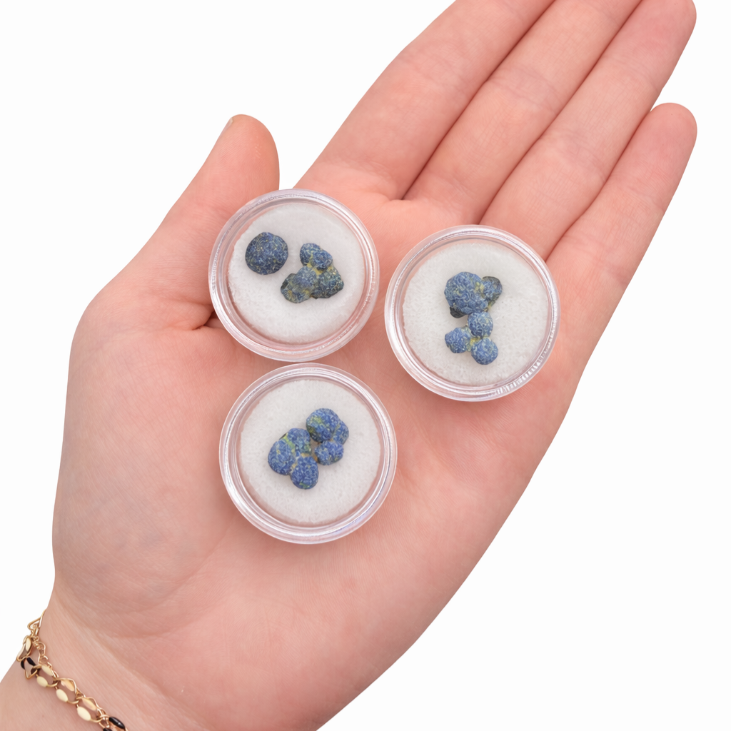 This listing is for one (1) gem jar of natural azurite ball specimens.