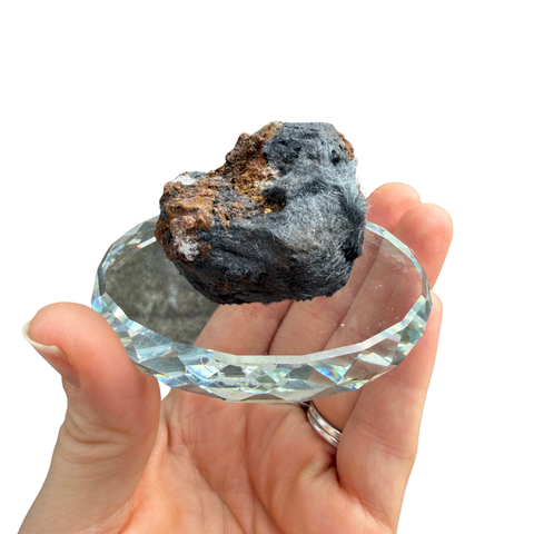 This listing is for one (1) pyrolusite with fluorite specimen.