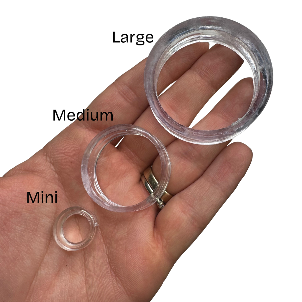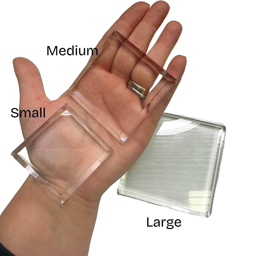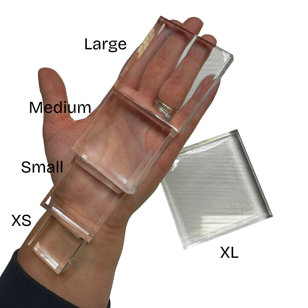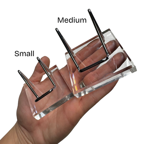 Square acrylic stands - use putty to hold the mineral on the stand. These can hold anything up to the size of the stand.