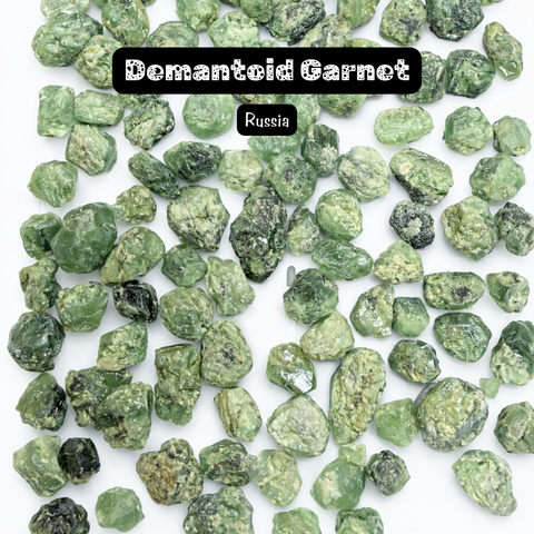 This listing is for one (1) gem jar of natural Demantoid Garnet specimens. You will receive 1-3 specimens.