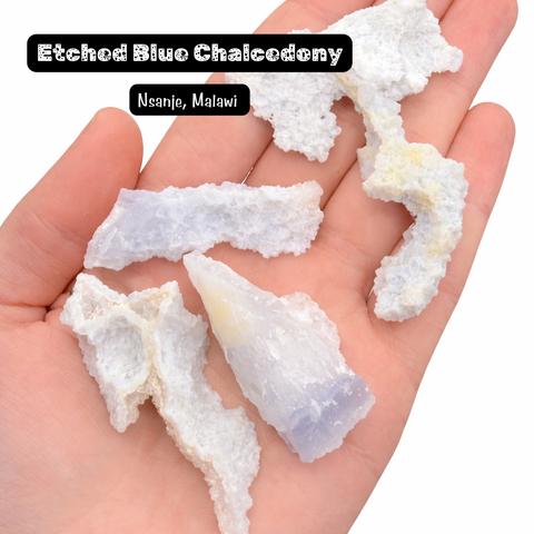 This listing is for one (1) etched blue chalcedony (blue lace agate) specimen.