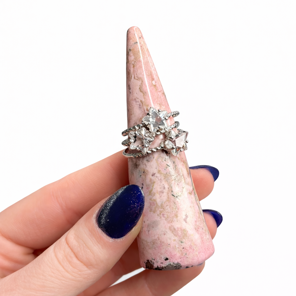 This listing is for one (1) clear quartz star ring.