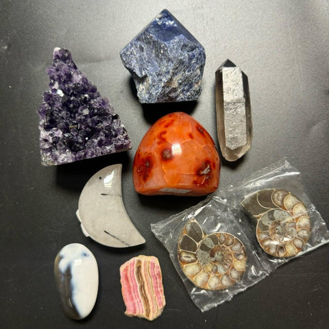 We do take requests! Leave a note at checkout and we will do our best to accommodate. For example: "I don't need anymore tourmaline, please don't include" OR "I've been looking for a carnelian free form."